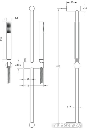 | Диаметр (ширина) ручного душа | 26 мм |