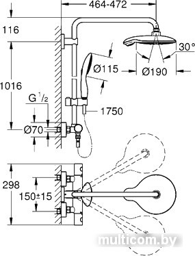 | Информация | Душевая система с термостатом для настенного монтажа. |