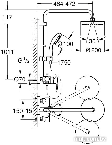 | Вылет верхнего душа | 464 мм (до 472 мм) |