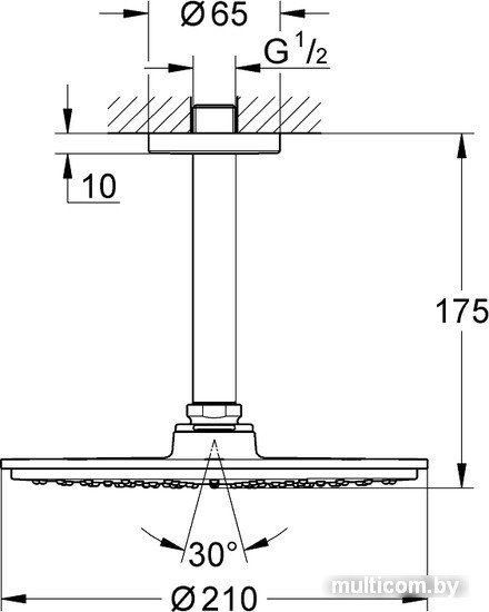 | Диаметр (ширина) верхнего душа | 210 мм |