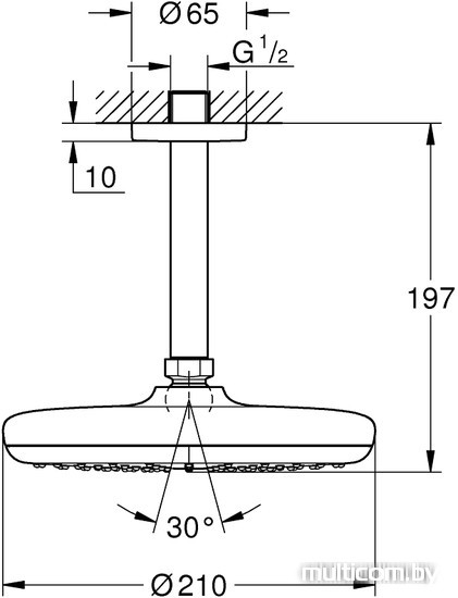 | Диаметр (ширина) верхнего душа | 210 мм |