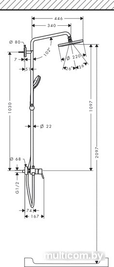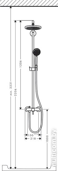 | Диаметр (ширина) верхнего душа | 220 мм |