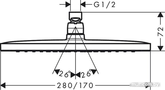 | Диаметр (ширина) верхнего душа | 280 мм (280x170) |