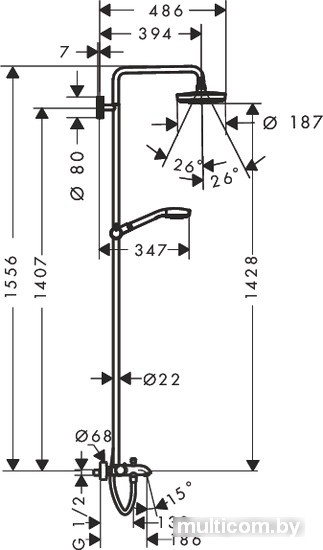 | Диаметр (ширина) верхнего душа | 180 мм |