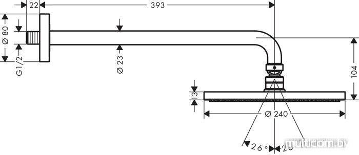 | Диаметр (ширина) верхнего душа | 240 мм |
