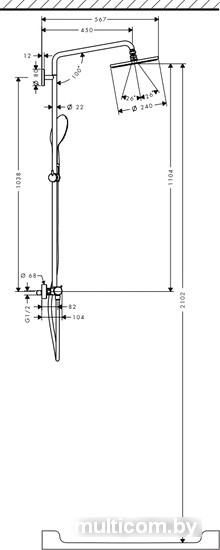 | Диаметр (ширина) верхнего душа | 240 мм |