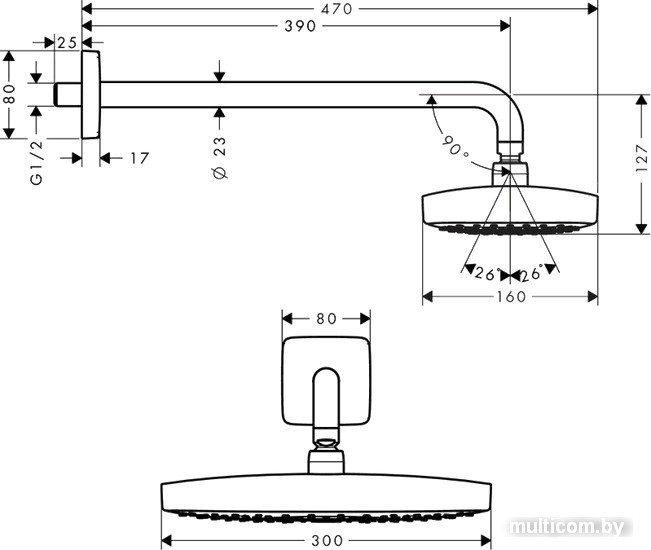 | Диаметр (ширина) верхнего душа | 300 мм |