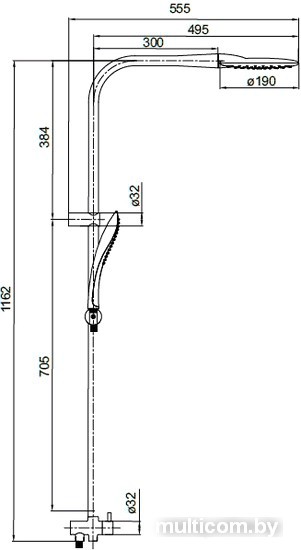 | Диаметр (ширина) верхнего душа | 260 мм |