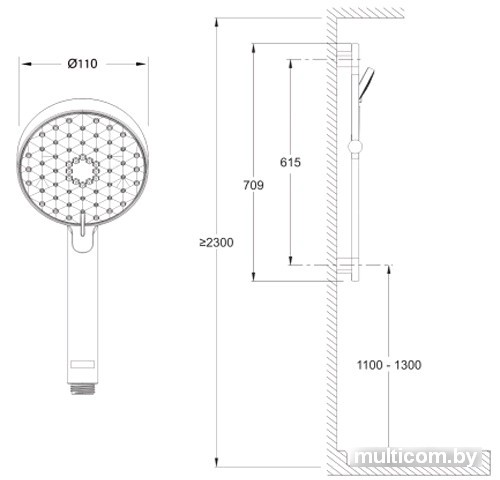 | Диаметр (ширина) ручного душа | 110 мм |
