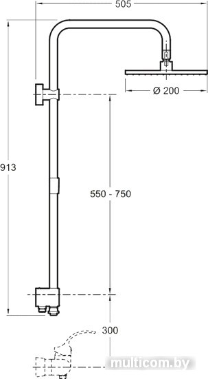 | Диаметр (ширина) верхнего душа | 200 мм |