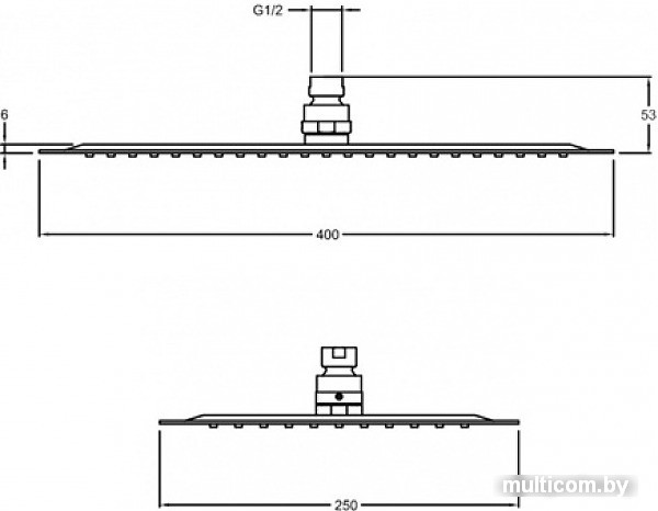 | Диаметр (ширина) верхнего душа | 400 мм (400x250) |