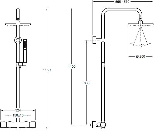 | Диаметр (ширина) верхнего душа | 250 мм |