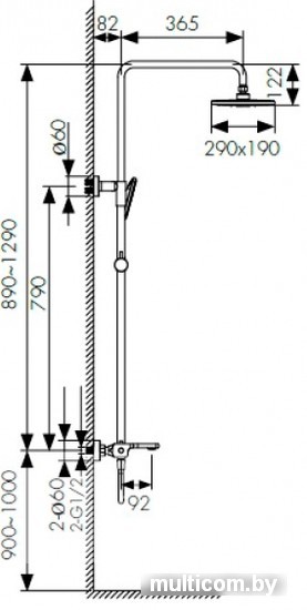 | Диаметр (ширина) верхнего душа | 290 мм (290х190) |