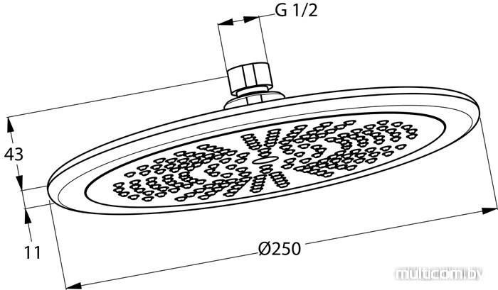 | Диаметр (ширина) верхнего душа | 250 мм |