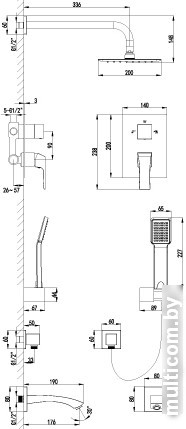 | Диаметр (ширина) верхнего душа | 300 мм (300x200) |