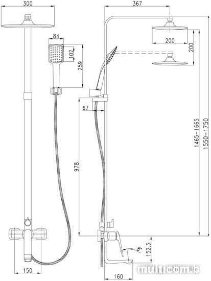 | Вылет верхнего душа | 367 мм |