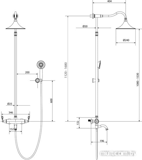 | Вылет верхнего душа | 404 мм |