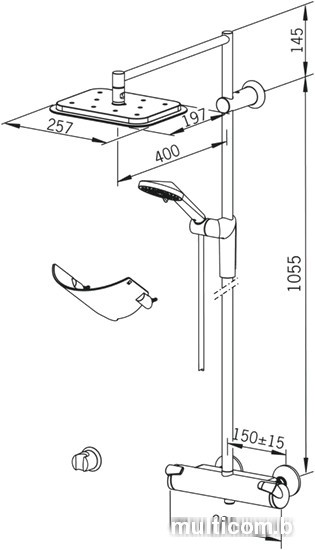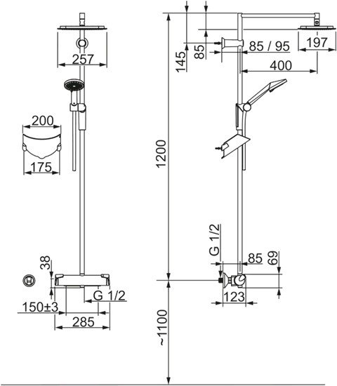 | Диаметр (ширина) верхнего душа | 257 мм |