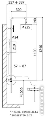 | Диаметр (ширина) верхнего душа | 225 мм |
