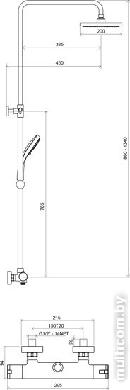 | Диаметр (ширина) верхнего душа | 200 мм |