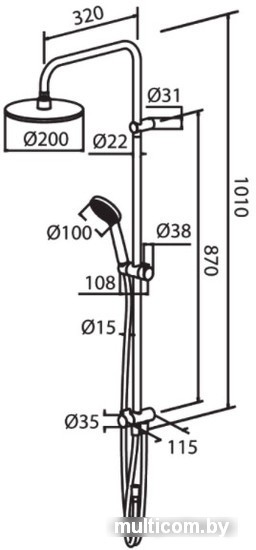 | Диаметр (ширина) верхнего душа | 200 мм |