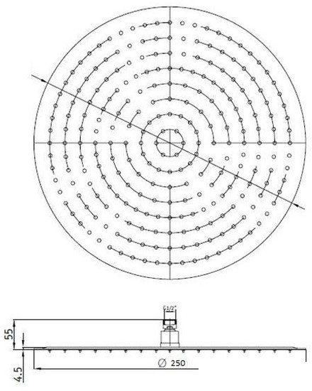 | Диаметр (ширина) верхнего душа | 250 мм |