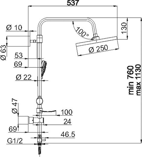 | Диаметр (ширина) верхнего душа | 250 мм |