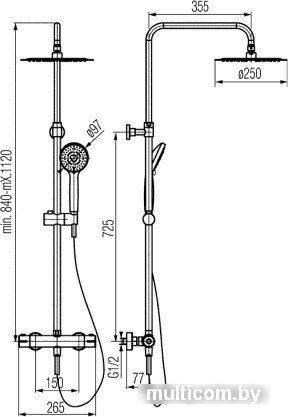 | Диаметр (ширина) верхнего душа | 250 мм |