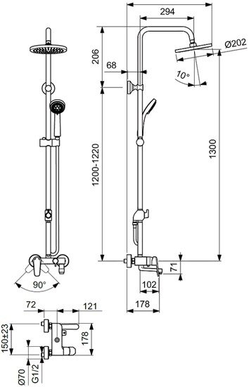 | Диаметр (ширина) верхнего душа | 202 мм |