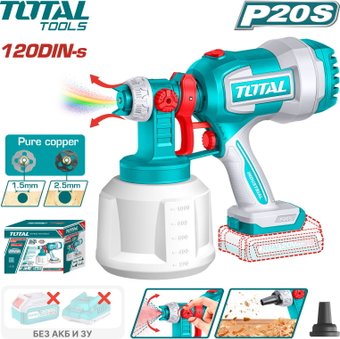 | Информация | -TOTAL TSGLI2004 - это современный аккумуляторный краскораспылитель, предназначенный для быстрого и качественного нанесения лакокрасочных материалов на различные поверхности. Инструмент оснащён сменными медными дюзами диаметром 1.5 мм и 2.5 мм, что позволяет эффективно работать с различными типами красок и лаков, а также обеспечивает равномерное покрытие. -Модель работает от аккумулятора серии TOTAL P20S с напряжением 20 В, что обеспечивает мобильность и независимость от электросети. В комплекте аккумулятор и зарядное устройство не предусмотрены, что позволяет подобрать аккумулятор нужной ёмкости в зависимости от задач пользователя. -Краскораспылитель отличается высокой производительностью до 800 мл/мин и способен работать с материалами вязкостью до 120 DIN. Простая регулировка параметров распыления, вместительный бачок объёмом 1000 мл и удобная эргономичная рукоятка делают инструмент отличным выбором для быстрой покраски мебели, стен, ограждений и других объектов. -Комплектация включает краскораспылитель, две медные дюзы, мерную чашу, иглу для чистки и насадку для сдувания пыли, что обеспечивает комфортную работу и легкое обслуживание инструмента. Благодаря качественной сборке и официальной гарантии 12 месяцев, этот инструмент надёжен и долговечен. |