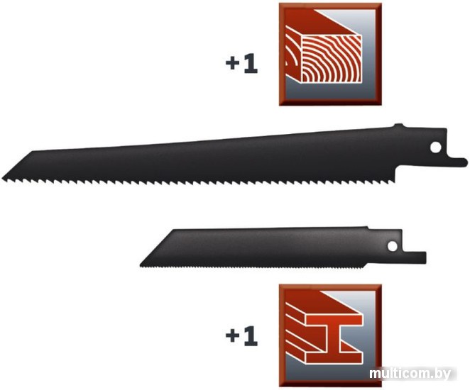 | Комплектация | - Пильное полотно по металлу- Пильное полотно по дереву |