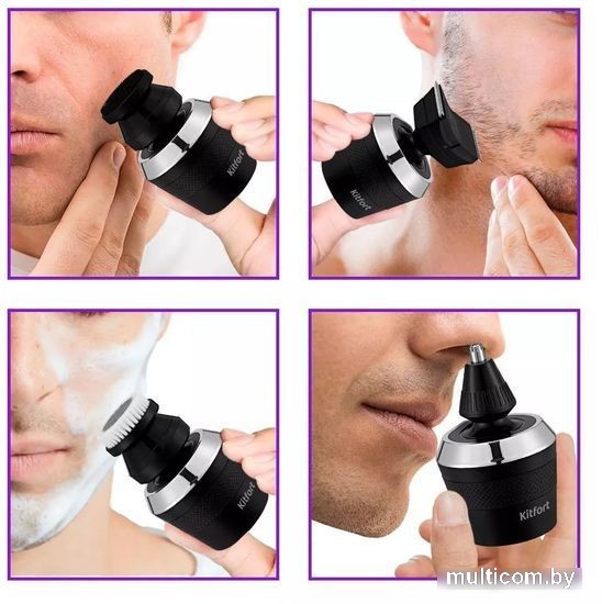Информация | Электробритва Kitfort KT-3142 – это прибор для бритья, а также для подравнивания усов или бороды. У данной бритвы основная насадка роторная. У таких бритв во время работы лезвия закрыты металлическими сетками и синхронно вращаются. Качественное бритьё Волоски, попадая в перфорацию сеток, срезаются вращающимися лезвия. Роторные бритвы отлично справляются с жёсткой щетиной, а также с более длинными волосами, которые растут в разном направлении. Выберите длину и гребень! В комплекте с устройством идут гребни-насадки разной длины и скошенный гребень для стрижки волос вокруг ушей. С помощью 5 съёмных гребней вы можете оставить волосы определённой длины, установив режим стрижки волос от 3 до 15 мм. Для вашего образа! Насадка-триммер создана для бритья и подравнивания волос на лице. Лезвия триммера находятся с двух сторон. С помощью насадки для носа вы можете безопасно удалять волосы из ушей и носа. Для расслабления и очистки кожи используйте насадки для массажа лица. Удобно заряжать Зарядить аккумулятор можно с помощью шнура питания USB, идущего в комплекте с электробритвой. Когда устройство полностью зарядится, индикатор будет гореть синим. Время зарядки полностью разряженного аккумулятора – 3 часа. Возьмите в дорогу! Электробритва KT-3142 очень компактная и лёгкая, её можно использовать в любом удобном вам месте — дома, в командировке, походах или на отдыхе. Всё необходимое в комплекте! В комплекте с устройством идёт USB-шнур, расчёска, а также щёточка для чистки лезвий и бутылочка с маслом. С помощью щёточки и масла вы сможете с лёгкостью ухаживать за электробритвой и поддерживать её в чистоте и исправном состоянии. |