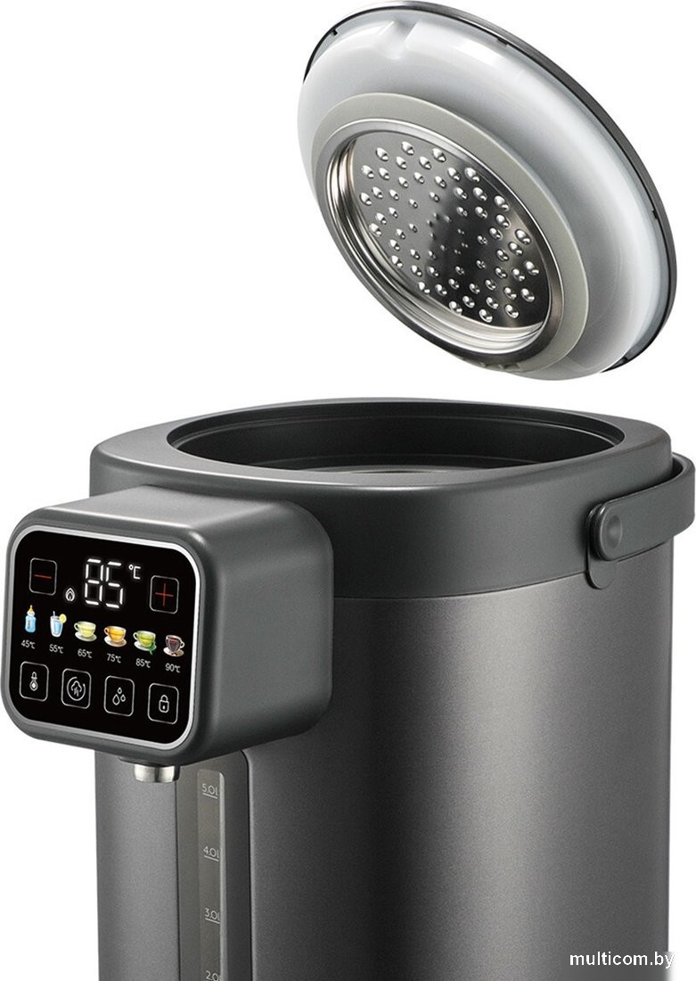 | Информация | -Ключевые характеристики Термопот объемом 5 литров с мощностью 1600 Вт подходит для больших семей и офисов, где требуется постоянный доступ к горячей воде. Корпус выполнен из нержавеющей стали AISI 304, что обеспечивает высокую прочность и долговечность устройства. Сенсорный дисплей и наличие терморегулятора делают эксплуатацию максимально удобной и современной. -Преимущества и отличия Среди ключевых преимуществ стоит отметить защиту от перегрева, блокировку включения без воды и съемную крышку для легкого обслуживания. Ручка для переноски облегчает транспортировку, а функция длительного/повторного кипячения позволяет быстро обновлять температуру воды по необходимости. -Практичность Модель оснащена индикацией уровня воды, что позволяет всегда контролировать остаток жидкости. Электронное сенсорное управление обеспечивает точную настройку температурного режима и отображает состояние работы на дисплее. Внутренняя колба из нержавеющей стали не впитывает запахи и легко очищается. -Уникальность Термопот отличается сочетанием большого объема, высокой мощности и современного сенсорного дисплея. Использование стали AISI 304 обеспечивает дополнительную надежность и устойчивость к коррозии, а продуманные системы безопасности делают устройство оптимальным выбором для ежедневного использования в разных условиях. |