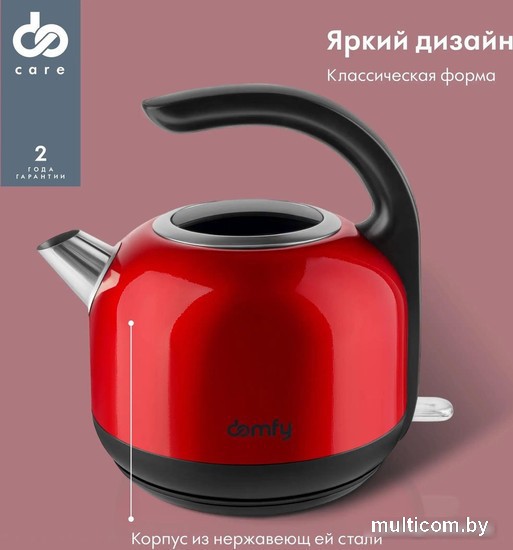 | Информация | ? Сочный красный цвет корпуса и классическая форма придают чайнику оригинальный внешний вид, который подойдет для любого стиля интерьера. ? Корпус из нержавеющей стали HQS обеспечивает высокую стойкость к механическим и химическим воздействиям, сохраняя презентабельный вид на протяжении всего срока службы. ? Съемная крышка делает процесс наполнения и мойки чайника удобным и простым. ? Удлиненный носик с легкосъемным нейлоновым фильтром предотвращает разбрызгивание воды и попадание накипи в чашку. ? Поворотное основание позволяет ставить чайник на основание с любой стороны и поворачивать его на 360 градусов. ? Шкала уровня в рукоятке позволяет оценить наполнение чайника без необходимости снимать крышку. ? Автоотключение обеспечивает безопасность при закипании воды или её отсутствии. ? Легкий вес чайника облегчает его перемещение. ? Электрочайник из нержавеющей стали DOMFY DSC-EK506 сочетает оригинальный дизайн с удобством эксплуатации, идеально подходя для любого интерьера. |