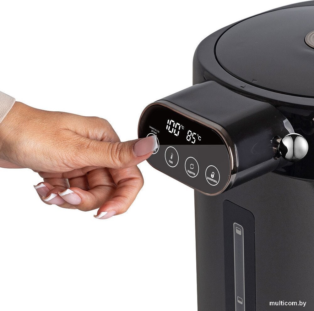 | Информация | - Электрический термопот Endever Altea-2105 - это современное устройство для быстрого и удобного нагрева и поддержания температуры воды, идеальное решение для дома или офиса. Благодаря объему 4.5 литра, термопот способен обеспечить горячей водой даже большую семью или коллектив, а мощность 1450 Вт позволяет быстро довести воду до кипения. - Устройство оснащено шестью режимами нагрева:45, 55, 65, 75, 85 и 95°C, что позволяет выбрать оптимальную температуру для приготовления различных напитков. После закипания вода поддерживается горячей столько, сколько термопот остается включенным, что экономит время и избавляет от необходимости повторно кипятить воду. - Корпус выполнен из металла, а колба - из нержавеющей стали, что обеспечивает долговечность и отличное сохранение тепла. Для удобства эксплуатации предусмотрен LED-дисплей, автоматический способ разлива воды с запоминанием объема, а также возможность вращения корпуса на 360°. Также реализованы такие функции, как повторное кипячение и выбор режима для очищенной или водопроводной воды. - Высокий уровень безопасности обеспечивается защитой от перегрева, блокировкой включения без воды, звуковой сигнализацией о нехватке воды и функцией блокировки от детей. Все эти особенности делают Endever Altea-2105 надежным помощником в ежедневном использовании. |