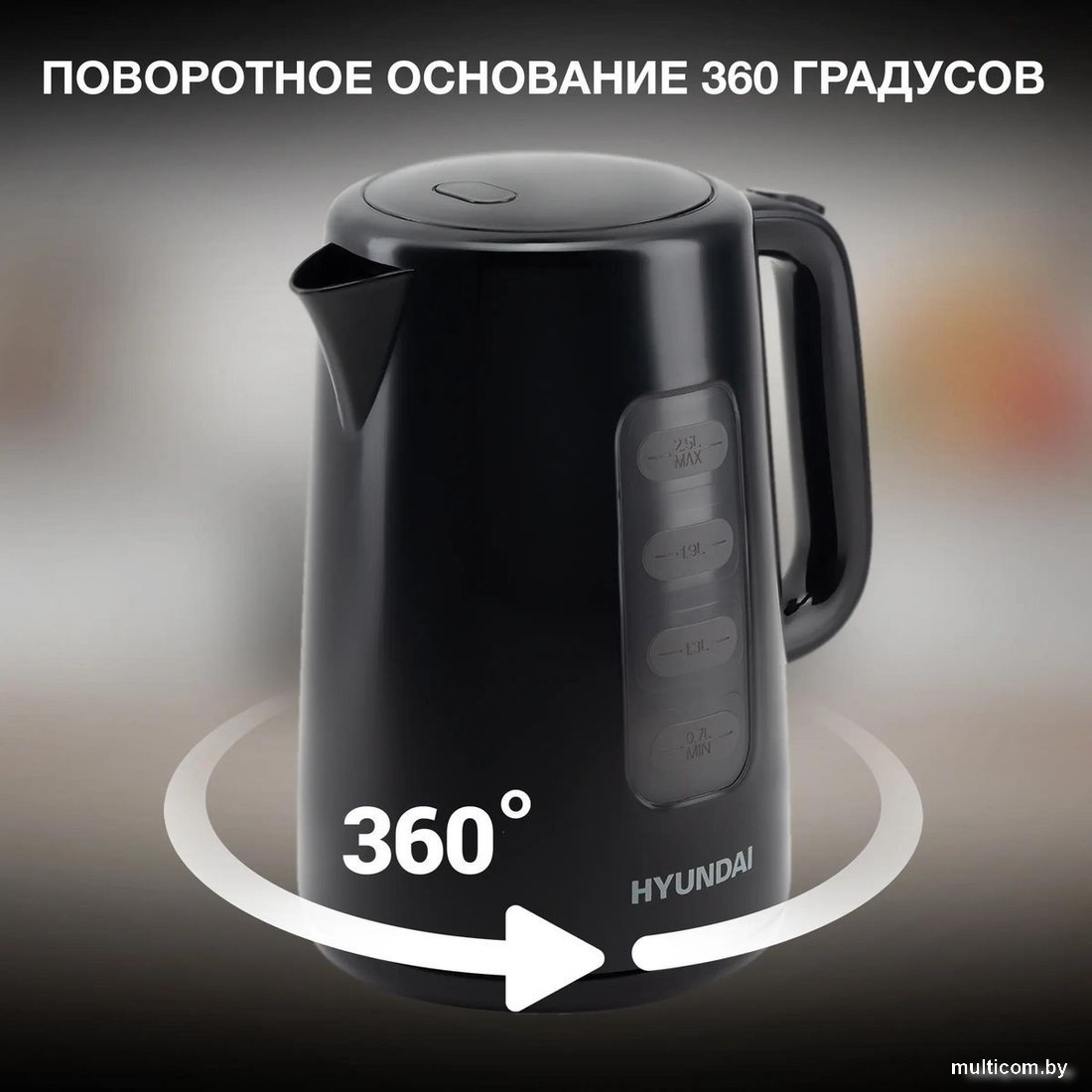 | Информация | - Hyundai HYK-P2501 – это эргономичный электрический чайник с рядом преимуществ. - Первое из них – внушительный внутренний объём, рассчитанный на 2,5 л воды. Чтобы нагреть полную ёмкость до состояния кипятка, прибору требуются считанные моменты. Это возможно благодаря предусмотренной мощности в 2200 Вт и высокотехнологичному скрытому в подставке нагревательному элементу. На ней чайник Hyundai HYK-P2501 проворачивается на 360 градусов. - Корпус данной модели изготовлен из качественного и прочного и лёгкого пластика. Он помогает не обжигать руки и сохранять температуру в течение долгого времени. Дизайн прибора выполнен в минималистичном чёрном цвете с использованием полупрозрачных деталей. На стенке чайника расположен индикатор уровня наполненности. - Под рукояткой устройства находится световой индикатор, который показывает, когда Hyundai HYK-P2501 работает. После окончания цикла нагрева устройство автоматически выключается. Кроме того, прибор надежно защищен от пуска без воды. Эта мера продлевает ресурс работы нагревательного элемента. - Крышка чайника закрывается на защёлку и открывается по нажатию кнопки. |