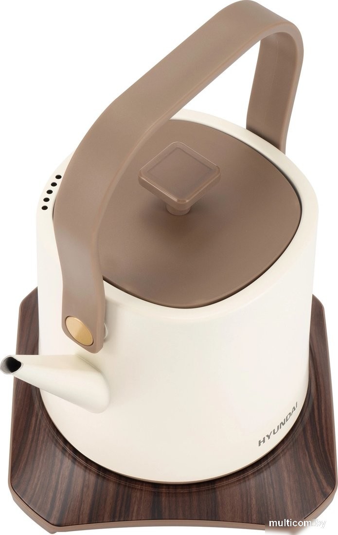 | Информация | - Hyundai HYK-S2043 - это компактный электрический чайник, выполненный в стильном металлическом корпусе кремового цвета с коричневыми элементами, который отлично впишется в любой современный интерьер и подчеркнет индивидуальность владельца. - Корпус чайника изготовлен из аустенитной стали 304, что обеспечивает высокую устойчивость к деформации, коррозии и появлению ржавчины, а скрытый нагревательный элемент облегчает уход за устройством и способствует его долговечности. - Наибольший комфорт при использовании достигается за счет тонкого носика, который обеспечивает плотный и аккуратный поток воды, минимизируя брызги и проливания, а полностью съемная крышка облегчает залив воды и чистку чайника. - Благодаря своему максимальному объему 0.6 л и мощности 1000 Вт, данная модель отлично подходит для путешествий, командировок и небольших кухонь, а также снабжена защитой от включения без воды для дополнительной безопасности. |