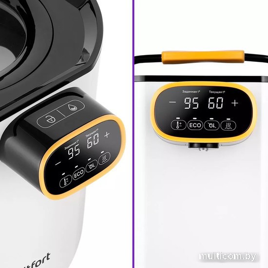 | Информация | ? Термопот КТ-2520 предназначен для кипячения и нагрева воды до заданной температуры, а также для поддержания температуры с помощью периодического включения и отключения нагрева. ? Современный дисплей отображает заданную и текущую температуру, а также позволяет выбрать температуру воды от 40 до 95 °C с шагом 1 °C. ? Кнопка "Дехлорирование" включает режим длительного кипячения воды для уменьшения содержания хлора. ? Двойные стенки термопота помогают сохранить тепло и сэкономить на электроэнергии. ? Ёмкость резервуара 5 литров, а прозрачная часть крышки позволяет контролировать уровень воды. ? Кнопка "ЕСО" автоматически выключает прибор в темноте и включает его при появлении света, а блокировка кнопки подачи воды предотвращает случайное включение. ?? Для продления срока службы термопота рекомендуется удалять накипь по мере ее образования и хранить прибор в сухом и прохладном месте, недоступном для детей. Не используйте абразивные моющие средства и не погружайте устройство в воду. |