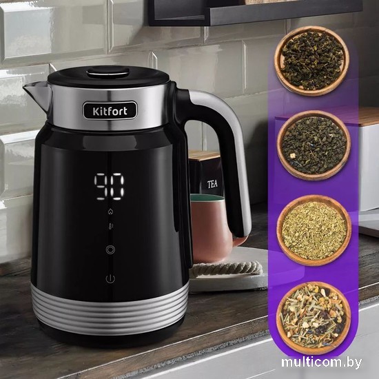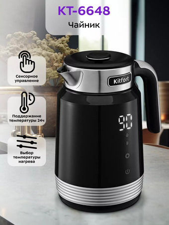 | Информация | ? Электрический чайник с электронным терморегулятором Kitfort КТ-6648 может не только вскипятить воду, но и нагреть её до температуры 40, 55, 80 или 90 °С, что очень удобно при заваривании различных сортов чая. ? Корпус чайника выполнен из сочетания нержавеющей стали и пластика. Ручка выполнена из пластика, а крышка — из сочетания нержавеющей стали и пластика. Крышка чайника съёмная. Минимальная и максимальная отметки находятся на внутренней стороне корпуса. ? На чайнике расположена панель управления и LED-дисплей. На дисплее отображается текущая температура воды в чайнике, а при установке температуры — температура нагрева воды. Температура воды на дисплее отображается постоянно, что очень удобно. ? Чайник оснащён функцией поддержания температуры в течение 24 часов. Температура воды контролируется встроенным в дно чайника термодатчиком. ? Подставка с центральным контактом даёт возможность располагать на ней чайник в любом положении, обеспечивая вращение на 360°. Снизу имеется отсек для хранения шнура, в который можно смотать излишки шнура электропитания, чтобы он не мешал на столе. |