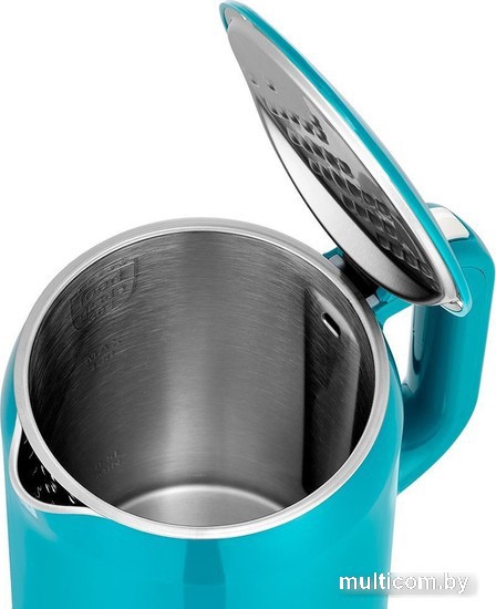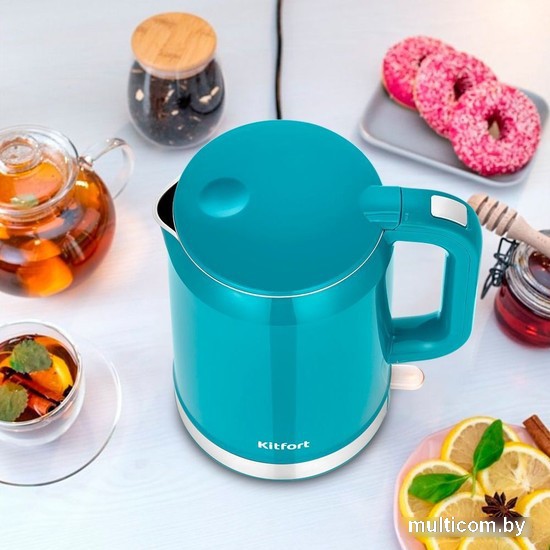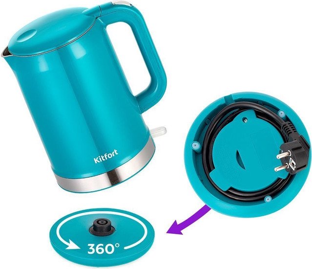 | Информация | ? Мощный и вместительный чайник Kitfort КТ-6649 идеально подойдет для теплых встреч с семьей и друзьями. ? За один раз в чайнике можно вскипятить до 1,5 л воды, достаточно для большой семьи! ? У чайника двойные стенки, которые сохраняют тепло воды и защищают от ожогов. ? Внешняя часть чайника выполнена из пластмассы, а внутренняя поверхность из нержавеющей стали. ? Нагревательный элемент скрыт в донной части чайника, что снижает шум при нагревании воды. ? Подставка с центральным контактом позволяет располагать чайник в любом положении и вращается на 360°. ? Встроенный отсек для хранения шнура электропитания. ? Яркий бирюзовый цвет чайника станет стильным акцентом на вашей кухне! |