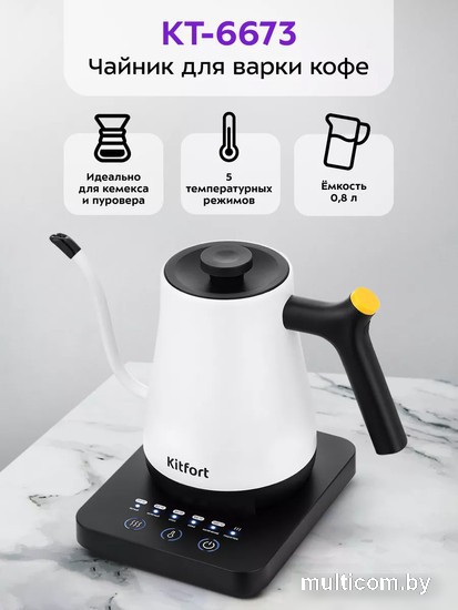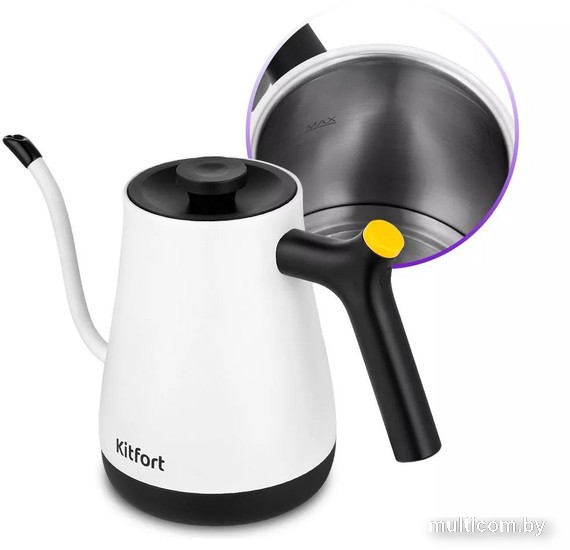 | Информация | ? Чайник KT-6673 предназначен для кипячения и нагрева воды и приготовления кофе способами кемекс и пуровер. Контролировать пролив воды с помощью обычного чайника неудобно из-за широкого носика, а длинный носик поможет вам сделать идеальный напиток. ? Длинный носик формирует тонкий и ровный поток воды, что является важным условием для приготовления кофе в кемексе или пуровере. Благодаря тонкому носику вы можете постепенно добавлять воду в кофе, добиваясь равномерной экстракции и раскрывая вкус кофе. ? Прибор может нагревать воду до температуры 77, 82, 91, 95 и 100°С. Это очень удобно для заваривания различных сортов чая: зелёный, белый, улун, а также для приготовления кофе. Полный чайник закипает за 4-5 минут. ? Корпус и крышка выполнены из нержавеющей стали и пластика. Ручка чайника пластиковая, не нагревается, удобно лежит в руке. Съёмная крышка и большое горлышко облегчают доступ внутрь при его чистке и во время удаления накипи. ? Подставка с центральным контактом даёт возможность располагать на ней чайник в любом положении, обеспечивая вращение на 360°. Снизу имеется отсек для хранения шнура, в который можно смотать излишки шнура электропитания, чтобы он не мешал на столе. ? После нагрева или кипячения чайник может поддерживать температуру воды в течение 2 часов. Для включения этого режима достаточно нажать на соответствующую кнопку на панели управления. Всё это время будет гореть световой индикатор. ? Чайник КТ-6673 выполнен в дизайне коллекции «Penguin Pack», который отражает энергию и яркость нового маскота - пингвина по имени Питер. В комплекте с прибором вы найдёте креативный магнит с этим персонажем. ? Помимо стильного внешнего исполнения и коллекционного магнита в комплекте, прибор упакован в фирменную коробку в дизайне коллекции «Penguin Pack». Остаётся лишь выбрать повод и вручить подарок! |