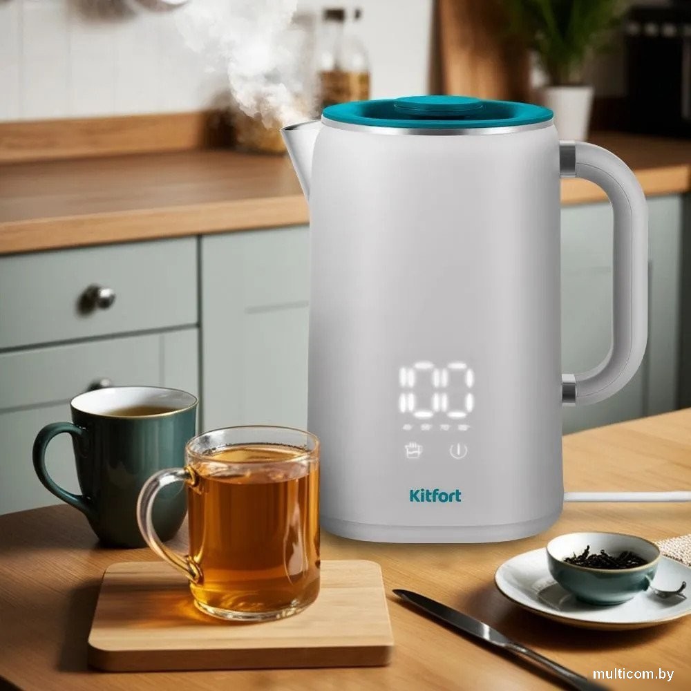 | Информация | На любой вкус Электрический чайник КТ-6687 может не только вскипятить воду, но и нагреть её до температур: 45, 55, 70 и 85 °С, что очень удобно при заваривании различных сортов чая. Удобное использование Ручка чайника не нагревается и удобно лежит в руке. На LED-дисплее, который расположен на корпусе, постоянно отображается температура воды, что очень удобно. Управление чайником осуществляется с помощью двух сенсорных кнопок, расположенных под дисплеем. Защита от перегрева Полный чайник закипит примерно за 6,5 минут. При закипании или достижении установленной температуры чайник автоматически отключится. Прибор имеет защиту от перегрева и от включения без воды: при включении без воды чайник нагревается и отключается. Простая конструкция Крышка чайника полностью съёмная. Это удобно для залива воды и очистки чайника. |