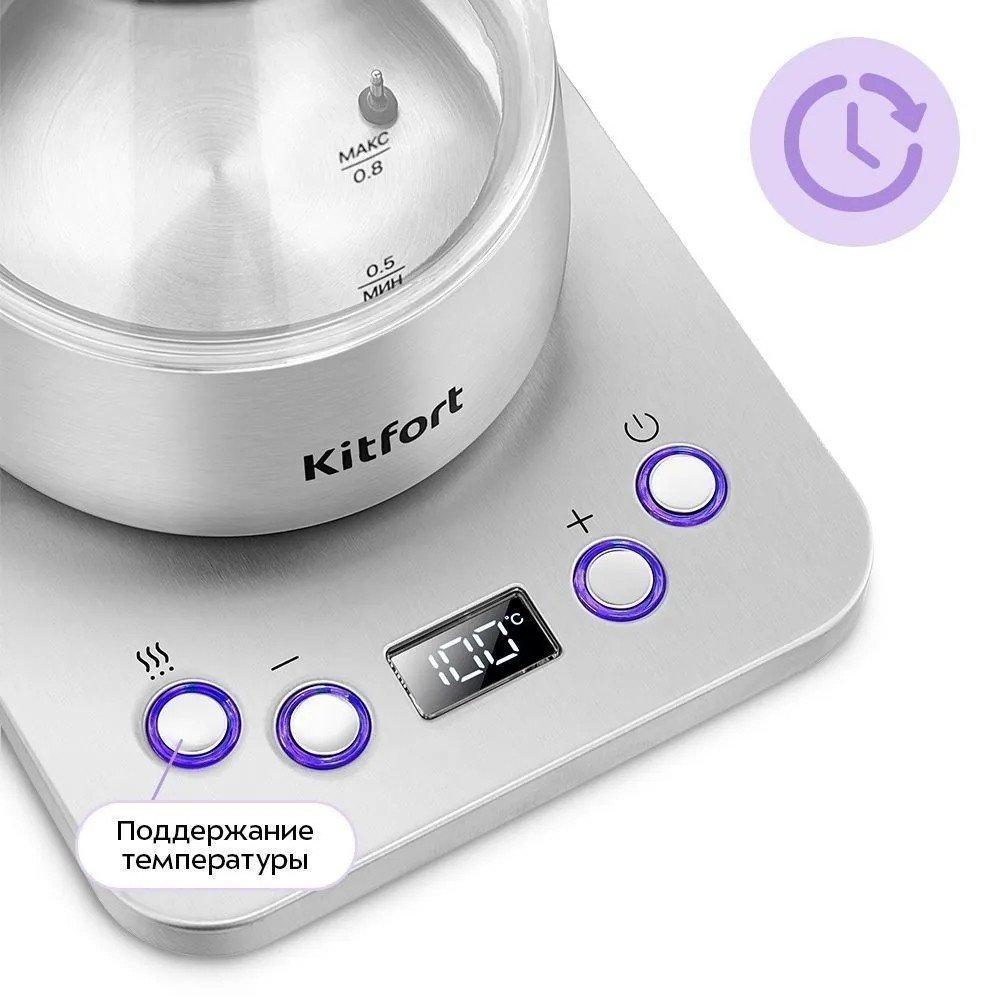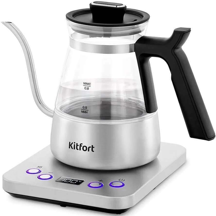 | Информация | - Чайник для варки кофе Kitfort KT-8707 — это стильное и функциональное устройство, созданное специально для ценителей кофе и чая. Благодаря тонкому носику он идеально подходит для приготовления кофе методами кемекс или пуровер, обеспечивая аккуратную подачу воды и равномерную экстракцию вкуса. Корпус выполнен из сочетания нержавеющей стали, стекла и пластика, а удобная пластиковая ручка не нагревается. - Модель оснащена терморегулятором с возможностью выбора температуры нагрева воды в диапазоне 50 - 100 °C с шагом 5 °C. Управление осуществляется через электронную панель с LED-дисплеем, где отображается текущая и заданная температура. Также предусмотрена функция поддержания температуры воды в течение часа и таймер отложенного старта. - Объем чайника составляет 0.8 литра, мощность — до 1300 Вт, что позволяет вскипятить воду всего за 5 минут. За безопасность отвечает автоматическое отключение при закипании, а также защита от включения без воды. Нагревательный элемент скрыт и изолирован металлической пластиной, что снижает образование накипи и уменьшает шум во время работы. - Чайник прост в уходе благодаря съемной крышке и гладким внутренним поверхностям. Внешний уровень воды легко контролируется благодаря прозрачным стенкам корпуса. KT-8707 сочетает в себе современный дизайн, продуманную эргономику и широкий набор функций, делая его отличным выбором для дома и офиса. |