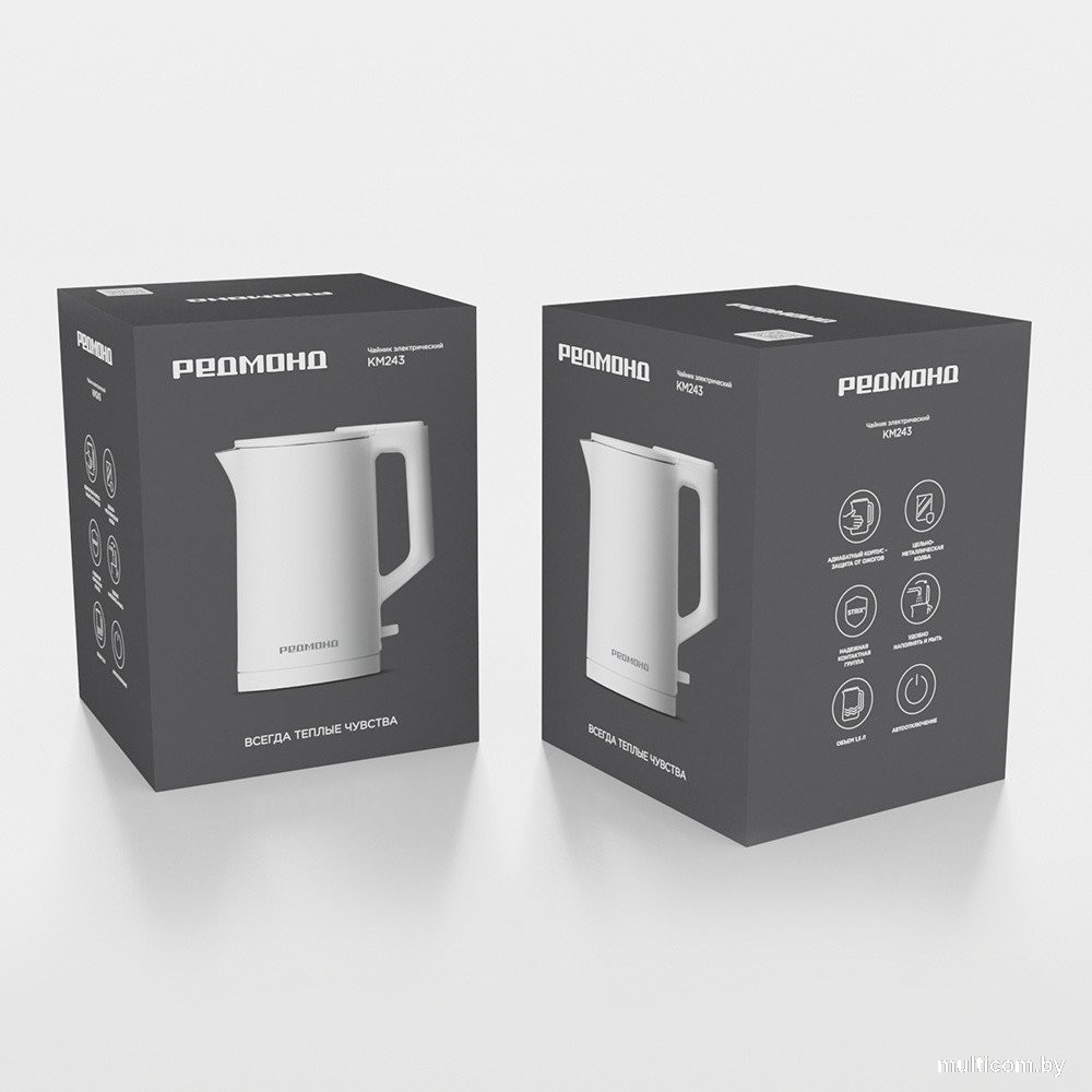 | Информация | - Чайник РЕДМОНД КМ243 — надежное устройство для кипячения воды объемом 1,5 л. Крышка широко открывается, корпус с двойными стенками хорошо держит тепло и не нагревается снаружи. Это делает чайник удобным для ежедневного использования. В целях безопасности чайник автоматически отключится при закипании, отсутствии воды и снятии с подставки. - Адиабатный корпус работает по принципу термоса. Двойные стенки с воздушной прослойкой лучше сохраняют тепло, а внешняя часть корпуса практически не нагревается, поэтому вы точно не обожжетесь. - Прочная колба цельнометаллическая колба выполнена без стыков и швов, благодаря чему гарантированно защищена от протечек. Материал долговечен и не выделяет токсичных веществ при нагревании. - Надежная контактная группа от британской компании Strix® обеспечивает максимально безопасное использование чайника и длительный срок службы. Контроллер расположен в центре подставки, за счет чего прибор можно поворачивать на 360°. - Широкое открытие крышки позволяет легко наполнять и мыть чайник. Вы быстро привыкнете к тому, что пользоваться KM243 так удобно. - Объем 1,5 л хватит, чтобы приготовить до 6 чашек горячих напитков. Не придется часто включить чайник, когда пришли гости. - Автоотключение системы безопасности снижает риск перегрева чайника. Он автоматически отключается: при отсутствии воды, снятии с подставки, закипании. |