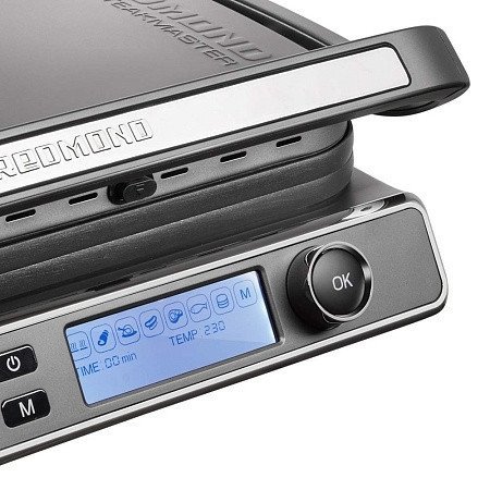 | Информация | - Гриль РЕДМОНД GM301 — это современный и компактный прибор, который позволит пожарить стейки, соски, рыбу и другие продукты без мангала и прочих приспособлений. В комплекте идет противень с высоким бортом, в котором удобно готовить запеченные блюда. Гриль имеет 7 автоматических программ, оснащен съемными панелями с антипригарным покрытием. - 3 в 1: гриль, духовка, барбекю РЕДМОНД GM301 совмещает функции 3 отдельных приборов: - духовки — для запекания блюд в противне (идет в комплекте), - барбекю — для жарки овощей, мяса и морепродуктов, - гриля — для приготовления стейков, овощей и выпечки: вафель, слоек, сырников. - 7 автоматических программ Гриль имеет 7 программ для приготовления разных типов блюд: - бекона, - птицы, - сосисок, - мяса, - рыбы, - котлет и бургеров. Кроме того, на гриле можно подогревать и размораживать, а также готовить в ручном режиме, самостоятельно устанавливая время и температуру. Так готовят, например, картофельную запеканку в противне. - Датчик толщины стейка При помощи специального датчика гриль сам определяет толщину продуктов и автоматически выбирает время приготовления. От вас потребуется только выбрать программу и закрыть прибор. - Индикация степени прожарки Гриль сам подскажет, когда пора снимать стейки с панелей. Индикатор перестанет мигать и будет гореть. Всего их три, как и степеней прожарки: - RARE — слабая прожарка, - MEDIUM — средняя, - WELL DONE — сильная. - Режим барбекю Раскройте гриль на 180° и готовьте на обеих панелях одновременно, представляя, что вы на открытом воздухе. Так вы сделаете в 2 раза больше еды за то же время, что и в закрытом гриле, а еще сможете готовить два блюда одновременно. Например, поджарить булочки для бургера на одной панели, а бекон — на другой. - Регулировка времени и температуры Не обязательно следовать кулинарной книге и готовить по предложенным рецептам. Экспериментируйте — чтобы приготовить то, что хочется, сами установите: - время — от 1 до 88 минут, с шагом в 1 минуту, - температуру — от 70 до 230 °С, с шагом 10 °С. - Антипригарное покрытие Многослойное антипригарное покрытие не позволит стейку и овощам пригореть. Вы сможете приготовить здоровый и полезный ужин и не испортить блюдо избытком масла. Чтобы очистить панели от крошек, снимите их и протрите. - Противень для запекания В комплекте идет противень с высокими бортиками, который позволит готовить блюда прямо как в духовке. Просто выложите продукты, поставьте противень на нижнюю панель и накройте верхней. Он будет нагреваться со всех сторон, поэтому вы быстро приготовите рагу или запеканку. - Жарит по-настоящему! |