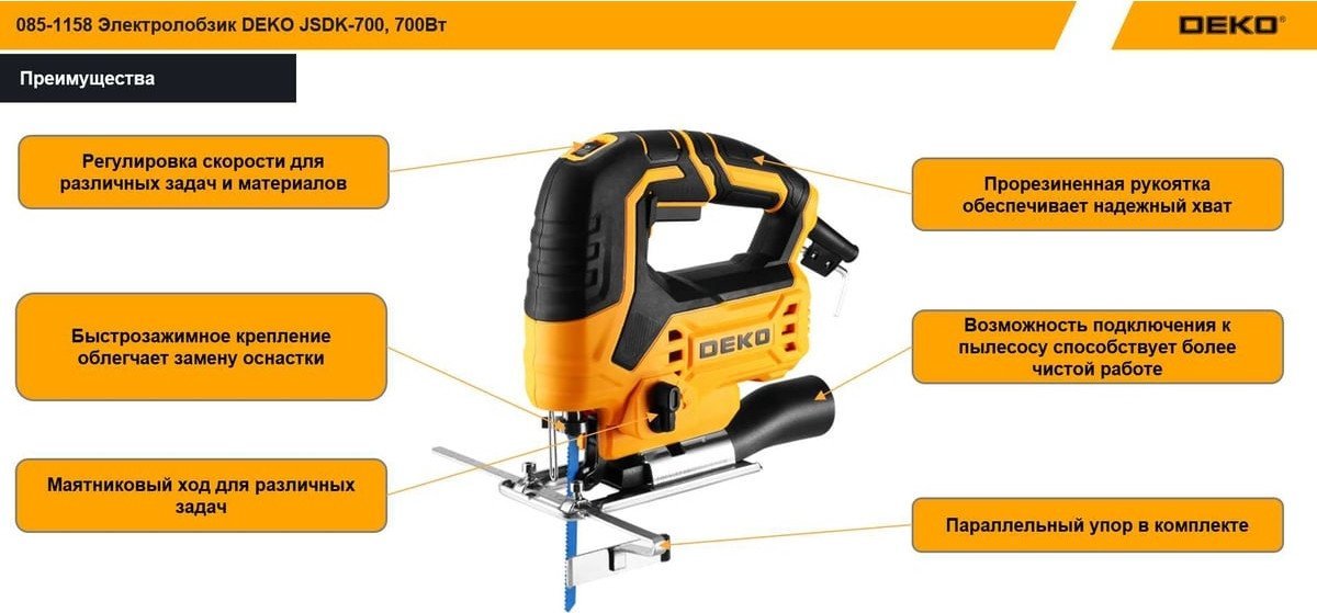 | Информация | - Электролобзик Deko JSDK-700 идеально подходит для выполнения различных задач, связанных с распиливанием материалов, таких как дерево, металл, пластик и резина. Этот инструмент станет незаменимым помощником как для профессионалов, так и для любителей DIY. - С помощью этого электролобзика вы сможете легко и точно выполнять отделочные и ремонтные работы. Его мощный двигатель обеспечивает высокую производительность, что позволяет справляться с любыми задачами. - Удобная конструкция и эргономичная рукоятка делают работу с Deko JSDK-700 комфортной и безопасной. Вы сможете управлять инструментом с легкостью, что особенно важно при выполнении сложных резов. - Обратите внимание на возможность регулировки скорости, что позволяет адаптировать инструмент под различные материалы и типы работ. Это делает электролобзик универсальным решением для вашего домашнего мастерского арсенала. - Deko JSDK-700 — это надежный и эффективный инструмент, который поможет вам реализовать любые идеи в области резки и обработки материалов. |