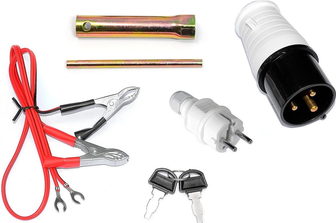 | Комплектация | - Поплавковый указатель топлива - Счетчик моточасов - Вольтметр - Аккумулятор - Розетки: 220В – 16А, 1 шт, 220В - 32А 1 шт. - Вилка, для подключения общей нагрузки, 2 шт. - Свечной ключ - Инструкция по эксплуатации и гарантийный талон производителя |