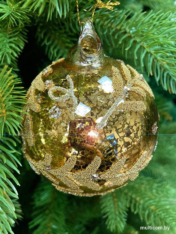 | Информация | - Элегантный шар золотого оттенка с уникальной мраморной текстурой. Декорирован изысканными листьями из золотистого бисера, что придает ему особый шарм. Смотрится просто великолепно! - Если вы хотите поразить своих гостей и оставить незабываемое впечатление, украсьте свою елку стеклянными игрушками. В то время как пластиковые елочные украшения распространены повсеместно, стеклянные изделия остаются настоящей редкостью! |