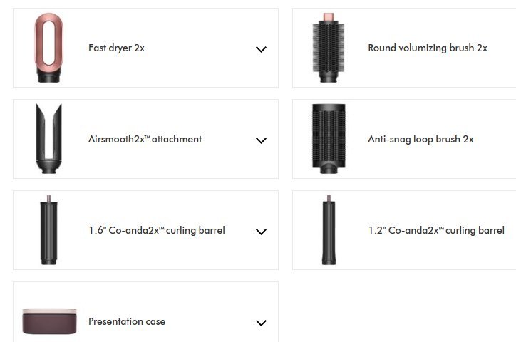 | Информация | - Заводская вилка питания подходит для розеток нашего региона. Мультистайлер Dyson Coanda2Х HS09 предлагает 6 режимов укладки: сушка, завивка, создание волн, выпрямление, разглаживание и придание объёма. Dyson HS09 получил обновлённый мотор Hyperdymium2, который создаёт в два раза более мощный воздушный поток по сравнению с предыдущими моделями. Это позволяет ускорить процесс сушки и укладки, при этом не перегревая волосы, что сохраняет их здоровье и естественный блеск. Насадки Dyson HS09 оснащены функцией запоминания предыдущих настроек температуры и скорости. Это значит, что при повторном подключении к стайлеру насадки автоматически активируют ваши любимые параметры. С помощью режима i.d. curl можно создавать локоны одним касанием. Устройство автоматически наматывает, укладывает, фиксирует и аккуратно выпускает локон, обеспечивая равномерный и стойкий эффект. Новая насадка AirSmooth2x использует высокоскоростной воздушный поток, который выпрямляет сухие волосы только воздухом, без прямого касания. Это помогает сохранить здоровье волос и натуральный блеск. Насадка для предварительной сушки ускоряет процесс подготовки волос к укладке. Она быстро подсушивает волосы до влажного состояния, оптимального для последующей работы со стайлером. Круглая щётка помогает придавать волосам объём у корней и формировать красивую форму прически, обеспечивая лёгкость и естественность образа. Обновлённая щётка для бережного расчесывания оснащена улучшенными кончиками щетинок, которые не цепляются за волосы и комфортны для кожи головы. Она позволяет легко отделять пряди во время укладки, минимизируя повреждения. |