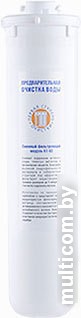 | Описание фильтра | Первый модуль К1-03 рассчитан на предварительную очистку воды (снижает содержание активного хлора, тяжелых металлов и органических веществ; благодаря высокой гидрофильности материала и лабиринтной структуре пор эффективно фильтрует нерастворимые примеси размером до 10 микрон, в том числе гидроокись железа). |